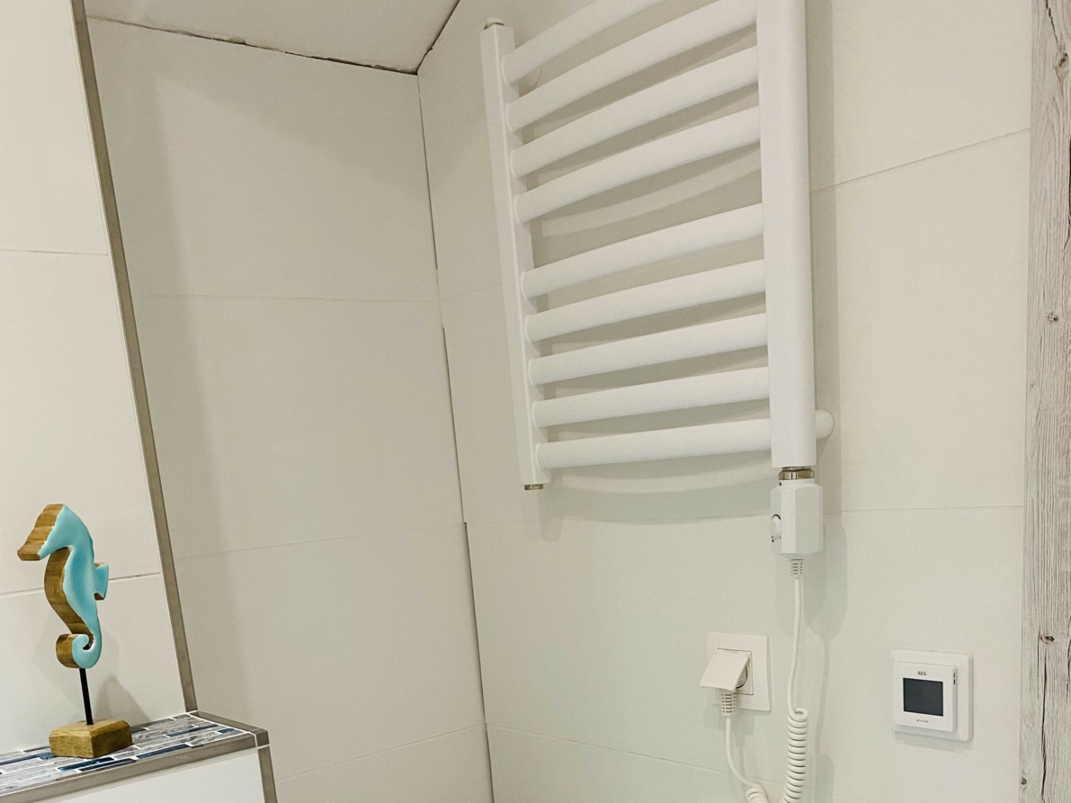 Umywalka, toaleta, prysznic sensoryczny, wieszak na ręczniki, podgrzewany wieszak na ręczniki, ogrzewanie podłogowe, pralka